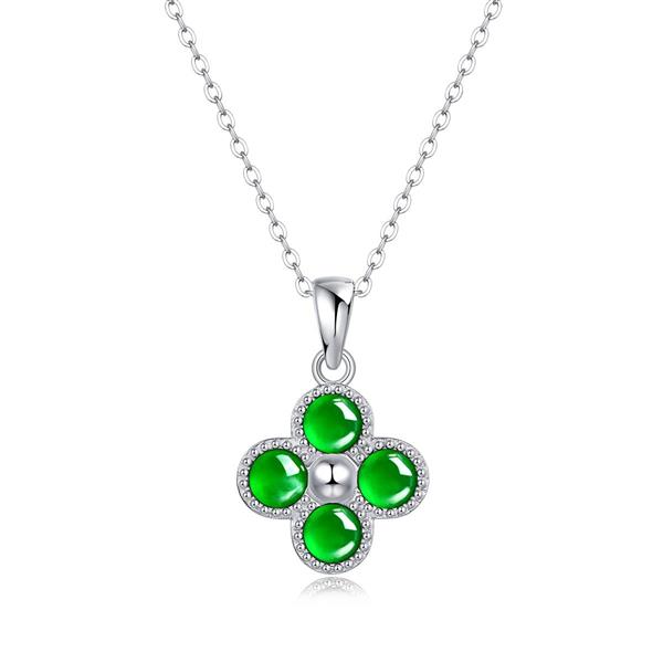 玖钻天然玉石玉叶项链 P11279