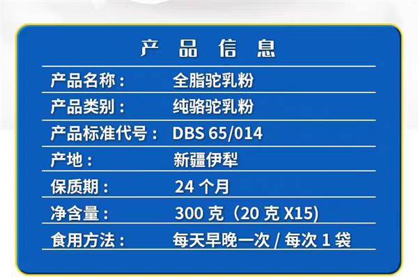 赛天山全脂驼乳粉 高钙无蔗糖 300g